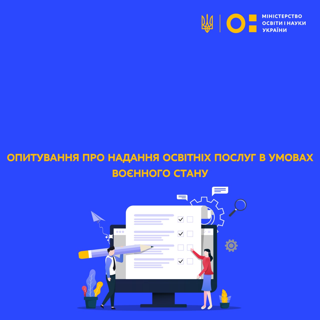 Міністерство освіти і науки України закликає соціально відповідальних партнерів, які надають освітні послуги, пройти опитування.