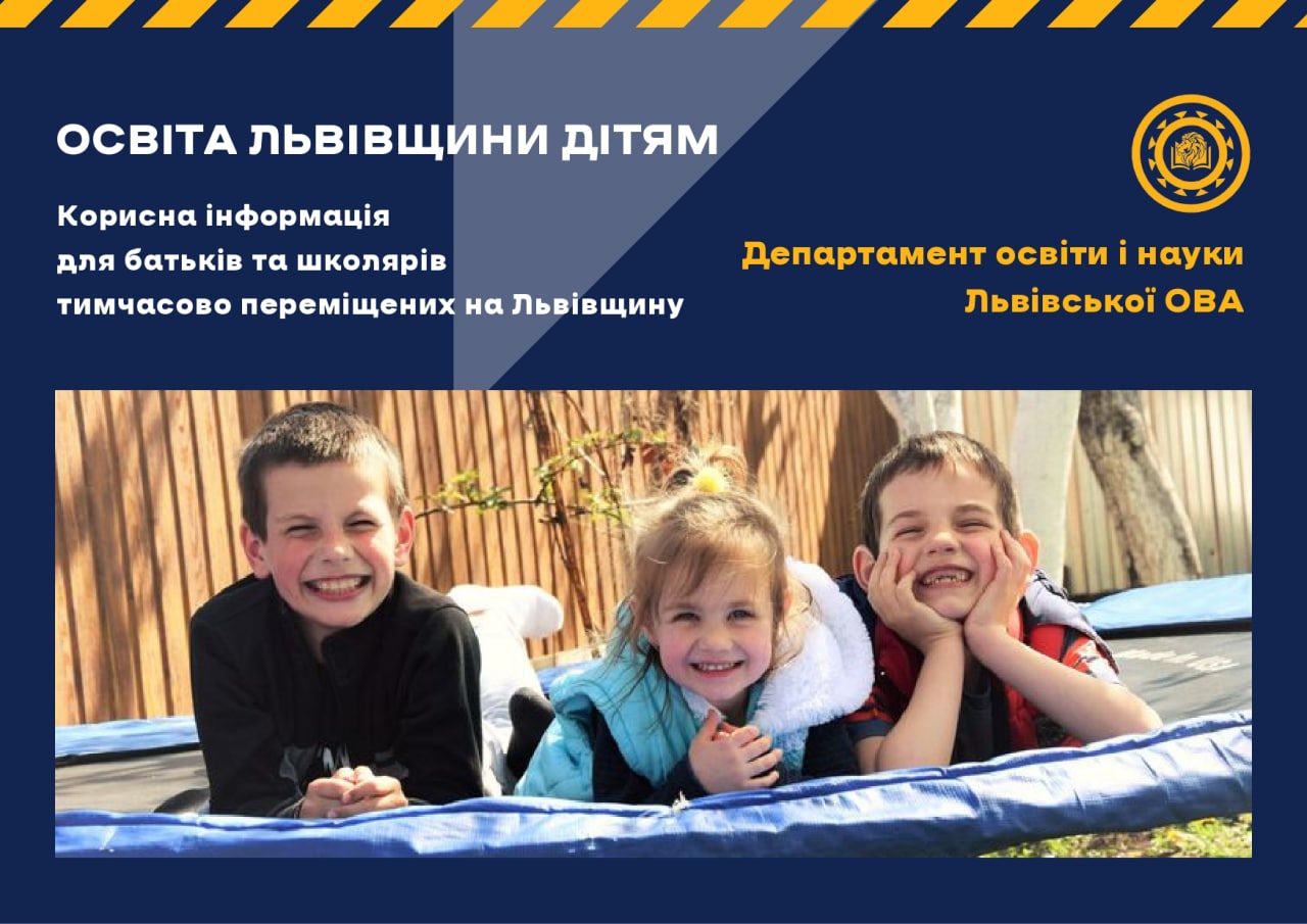 У Департаменті освіти Львівської ОВА підготували інформаційний буклет для тимчасово переміщених на територію Львівщини сімей, де зібрана така інформація: