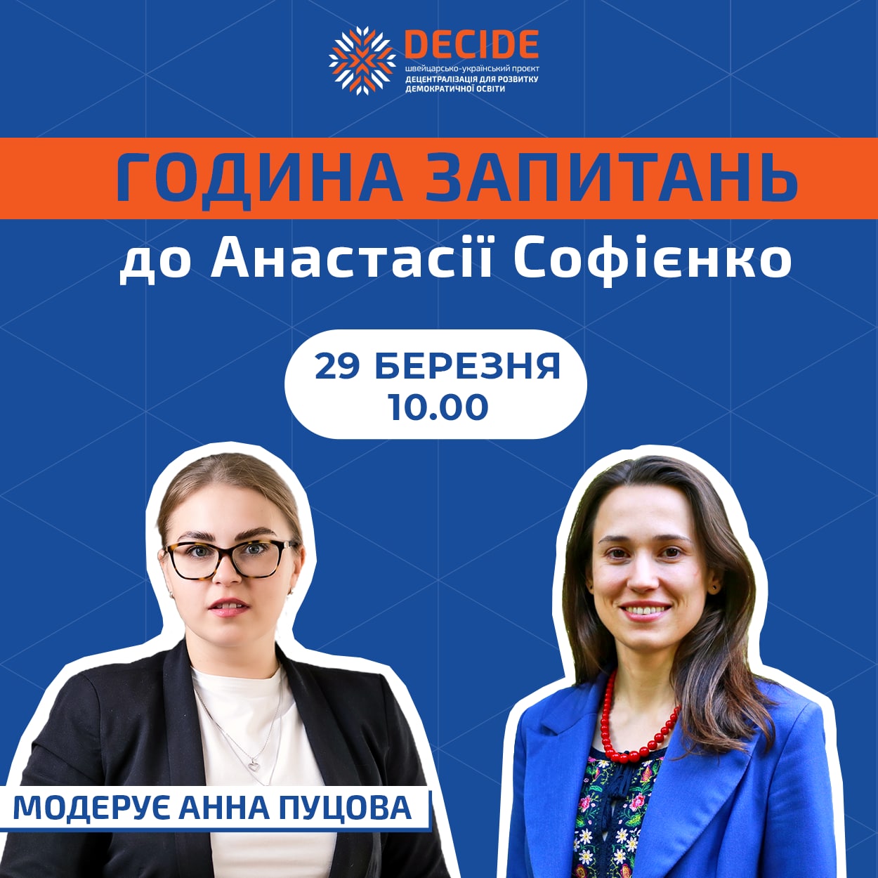 Модеруватиме «Годину запитань» Анна Пуцова, експертка проєкту DECIDE.