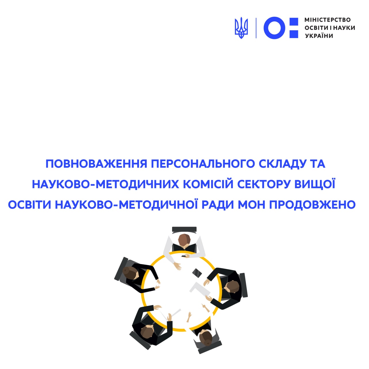 Відповідно до наказу Міністерства освіти і науки України від 1 квітня 2022 року, повноваження персонального складу та науково-методичних комісій (підкомісій) сектору вищої освіти Науково-методичної ради МОН продовжено на 3 місяці після припинення або скасування воєнного стану.