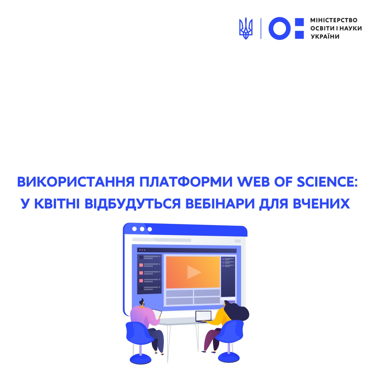 З 7 до 28 квітня 2022 року заплановано провести низку безкоштовних українськомовних вебінарів для вчених, які будуть присвячені питанням роботи з платформою Web of Science.