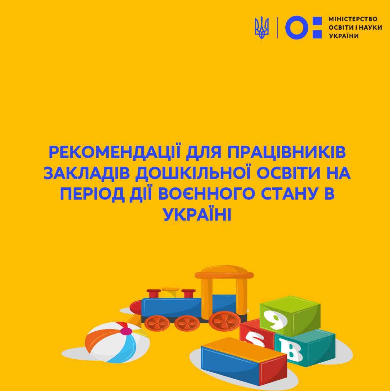Міністерством освіти і науки України розроблено рекомендації для працівників закладів дошкільної освіти на період дії воєнного стану в Україні.