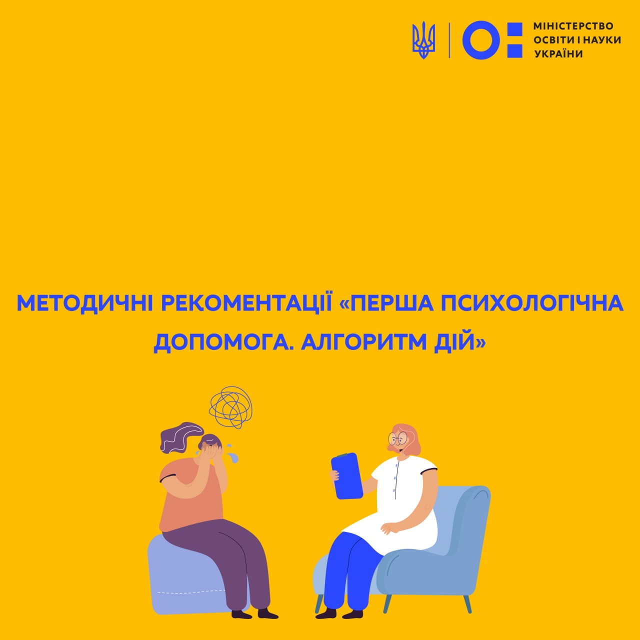 З огляду на існуючу загрозу психічному здоров’ю учасників освітнього процесу внаслідок збройної агресії російської федерації, команда МОН створила методичні рекомендації «Перша психологічна допомога. Алгоритм дій» для педагогічних працівників, психологів і соціальних педагогів закладів освіти.