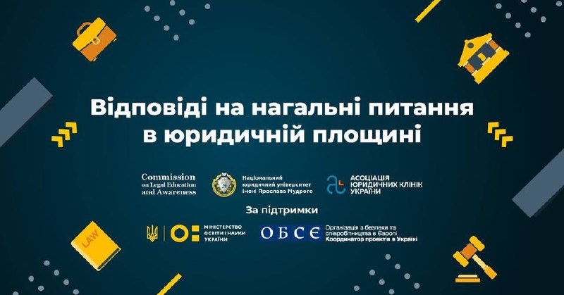 Commission on Legal Education and Awareness (Комісія з питань юридичної освіти та обізнаності) разом з Національним юридичним університетом імені Ярослава Мудрого та Асоціацією юридичних клінік України - АЮКУ, за підтримки Міністерства освіти і науки України та OSCE Project Co-ordinator in Ukraine (Координатора проєктів ОБСЄ в Україні), пропонує допомогу правознавців у роз'ясненні нагальних питань, які можуть виникати під час війни.