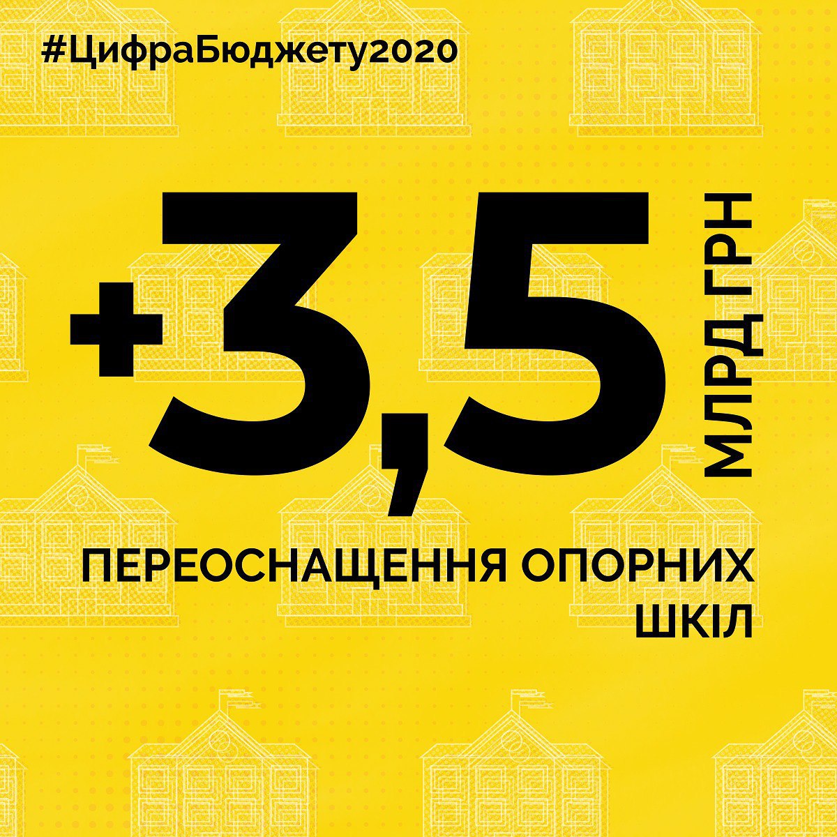 3,5 млрд грн з держбюджету 2020 року має бути спрямовано на створення НОВОГО ОСВІТНЬОГО ПРОСТОРУ в опорних школах. Для цього в проєкті бюджету з’явилася окрема нова програма.