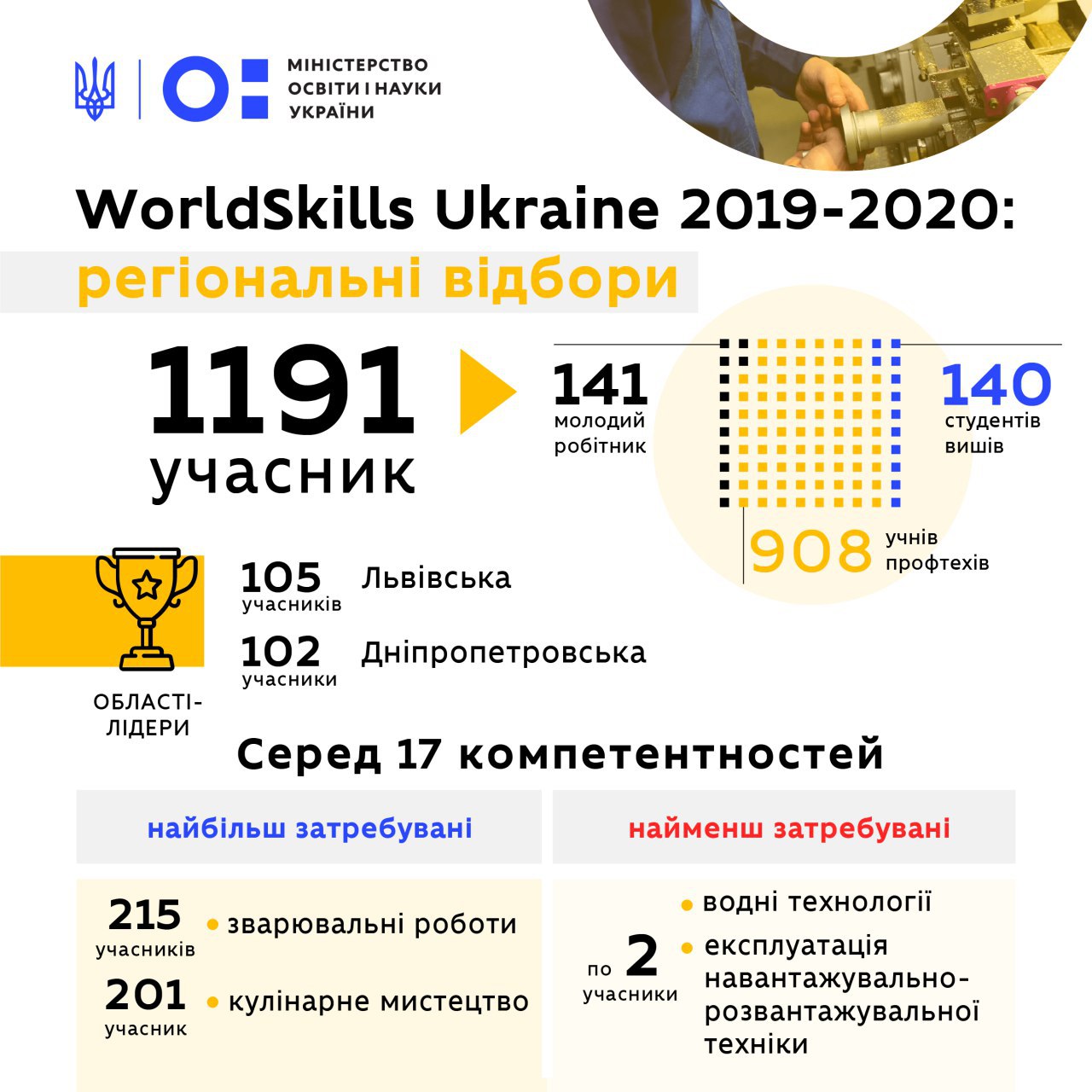 І етап WorldSkills Ukraine: майже 1200 конкурсантів, дві області-лідери, а найбільша активність серед зварників та кухарів