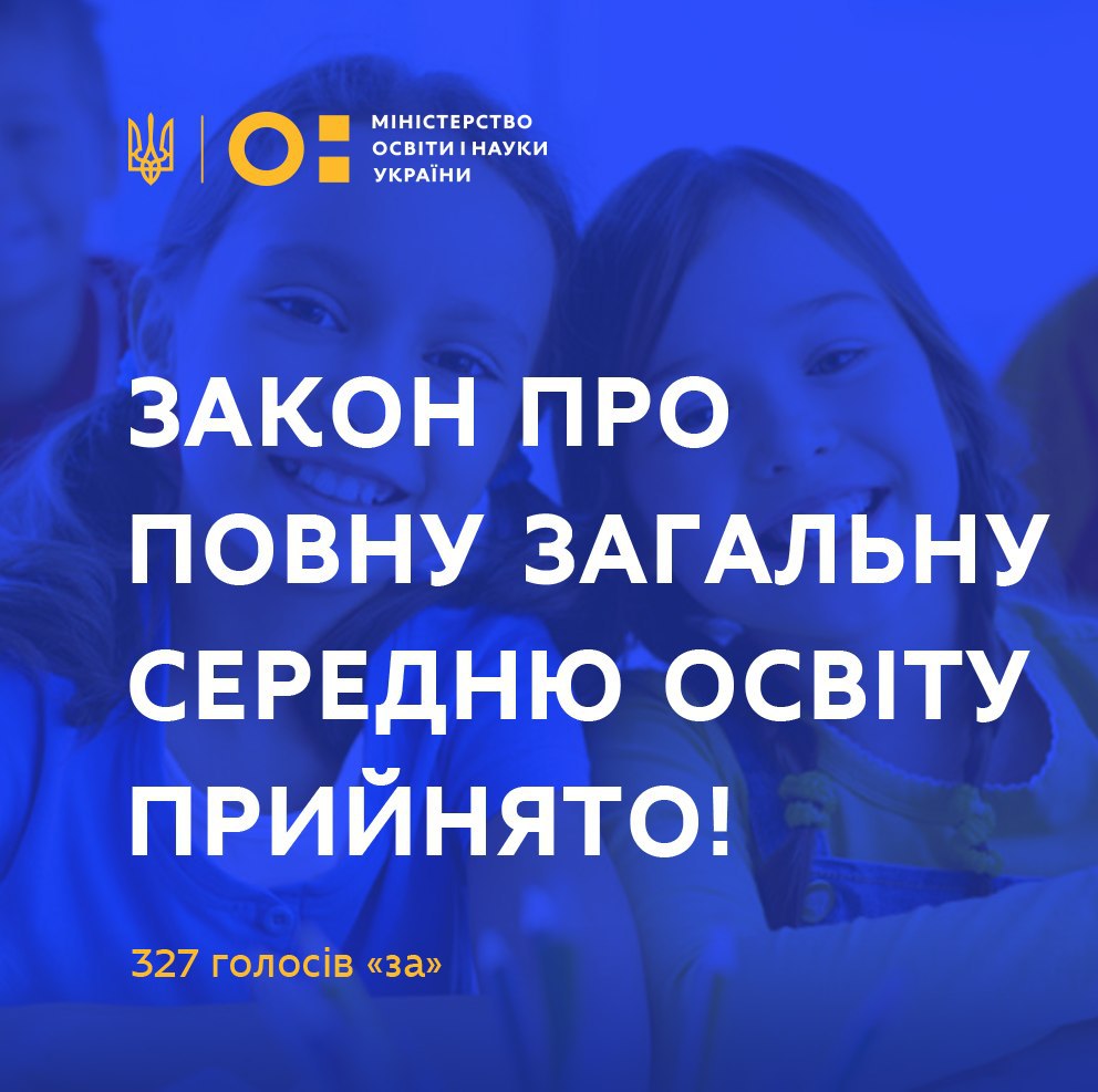 Прийнято новий Закон “Про повну загальну середню освіту” – “ЗА” проголосували 327 нардепів 🥳