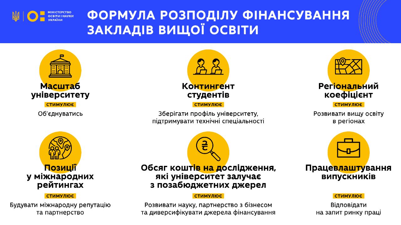 Фінансування за формулою отримають 136 закладів вищої освіти та 12 їхніх філій, які мають власні кошториси.