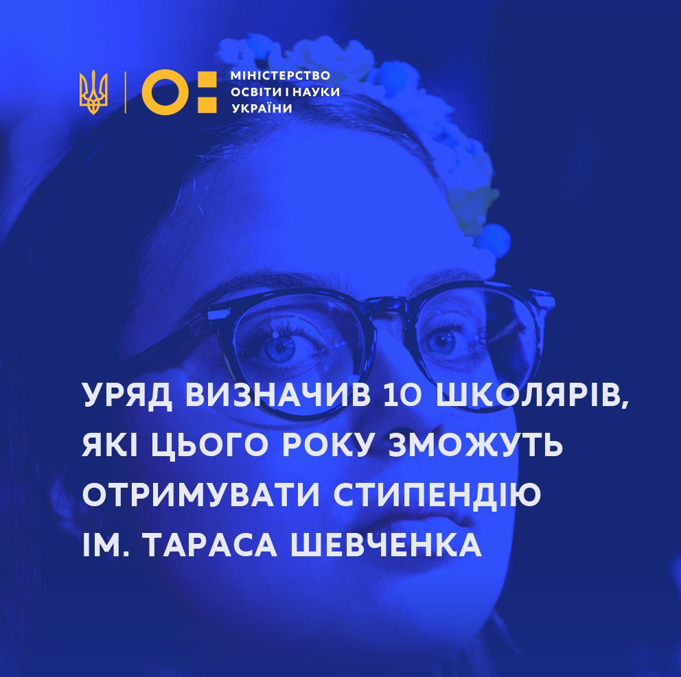 Уряд визначив 10 школярів, які цього року зможуть отримувати стипендію ім. Тараса Шевченка – нині її розмір складає 2720 гривень.