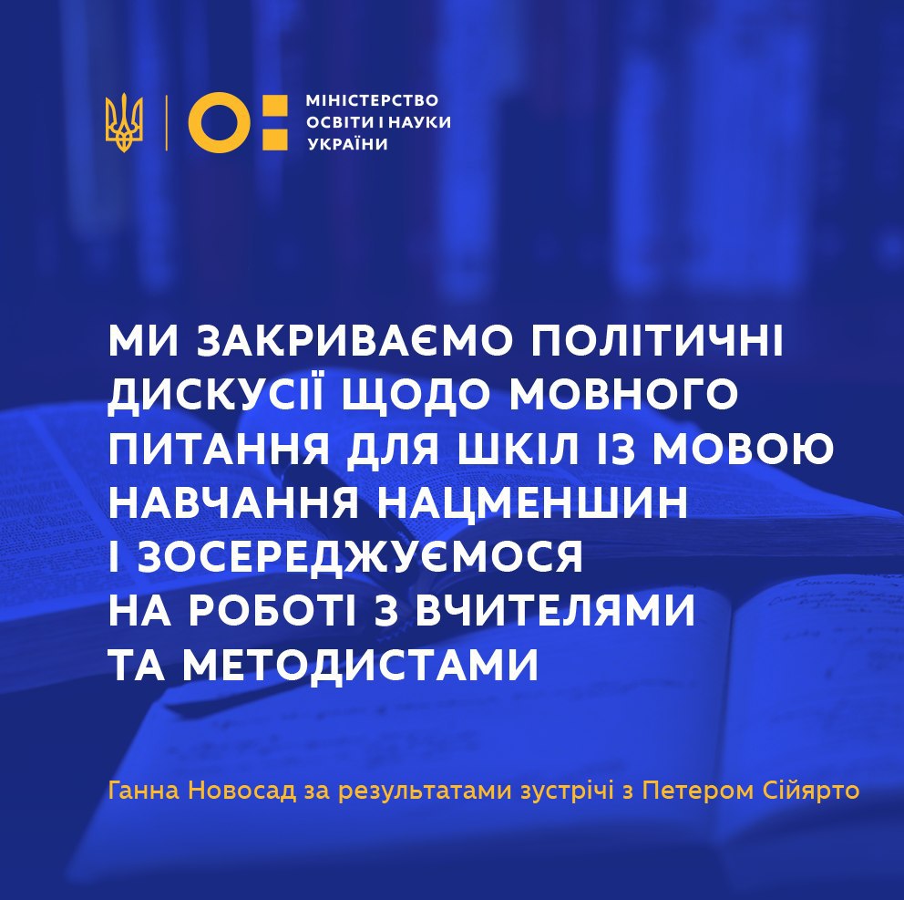Про це йшлося на зустрічі Міністра закордонних справ Вадима Пристайка та Міністра освіти і науки Ганни Новосад із Міністром зовнішньої економіки та закордонних справ Угорщини Петером Сійярто.