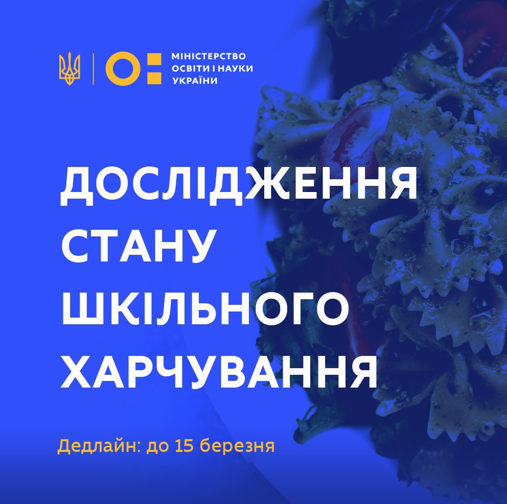 Запрошуємо батьків та школярів взяти участь у дослідженні стану шкільного харчування, що розпочато за ініціативи дружини Президента України Олени Зеленської.