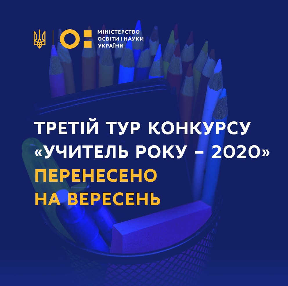 Третій тур всеукраїнського конкурсу «Учитель року – 2020» перенесено на 17-25 вересня 2020 року через обмеження проти поширення в Україні коронавірусної інфекції COVID-19.