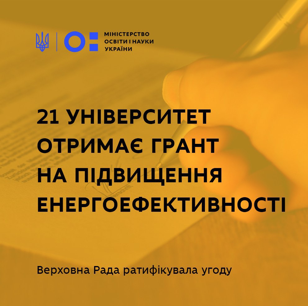 16 квітня на позачерговому засіданні Верховної Ради 339 народних депутатів проголосували “за” ратифікацію угоди про грант від Східноєвропейського Партнерства з енергоефективності та екології (E5P), спрямований на підвищення енергоефективності закладів вищої освіти.