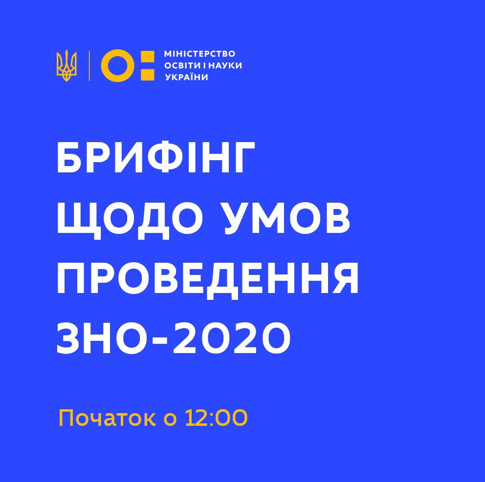 12 червня о 12:00 т.в.о. Міністра освіти і науки України Любомира Мандзій та в.о. директора Українського центру оцінювання якості освіти Валерій Бойко проведуть брифінг щодо умов проведення ЗНО-2020.