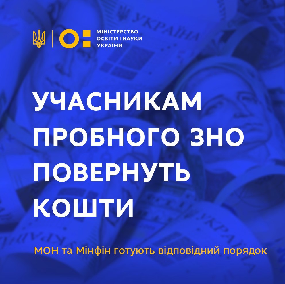 Детальна інформація щодо повернення коштів учасникам пробного ЗНО буде розміщена на сайтах МОН та Українського центру оцінювання якості освіти після офіційного погодження.