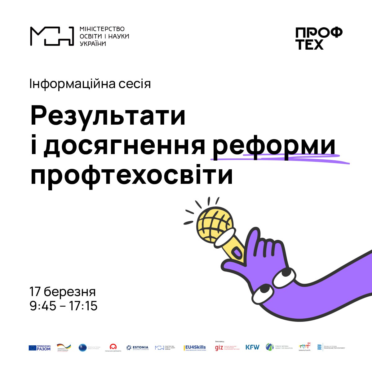 📢 17 березня 2023 року запрошуємо представників медіа та блогерів до участі в інформаційній сесії про ключові результати реформи професійної освіти та її потенціалу у відбудові України.