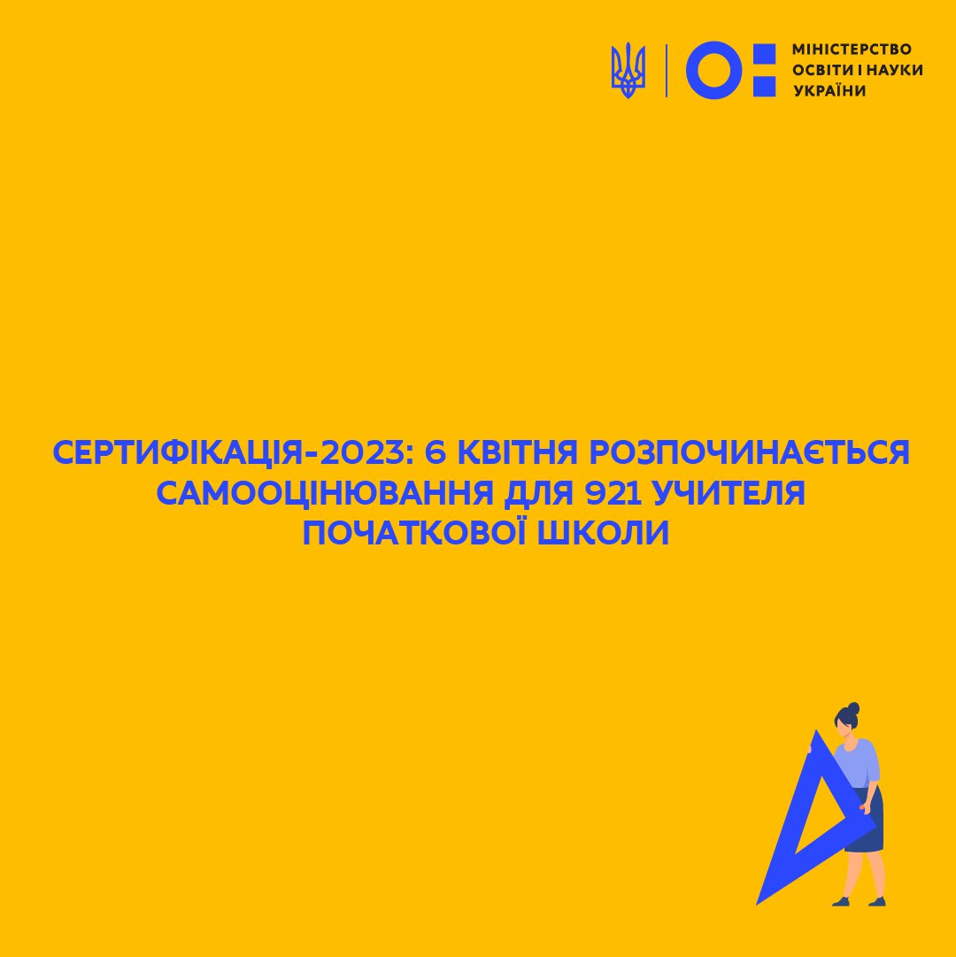 📢 Уже завтра, 6 квітня розпочнеться другий етап сертифікації педагогічних працівників для 921 учителя початкової школи – самооцінювання. Другий етап триватиме до 10 квітня 2023 року.