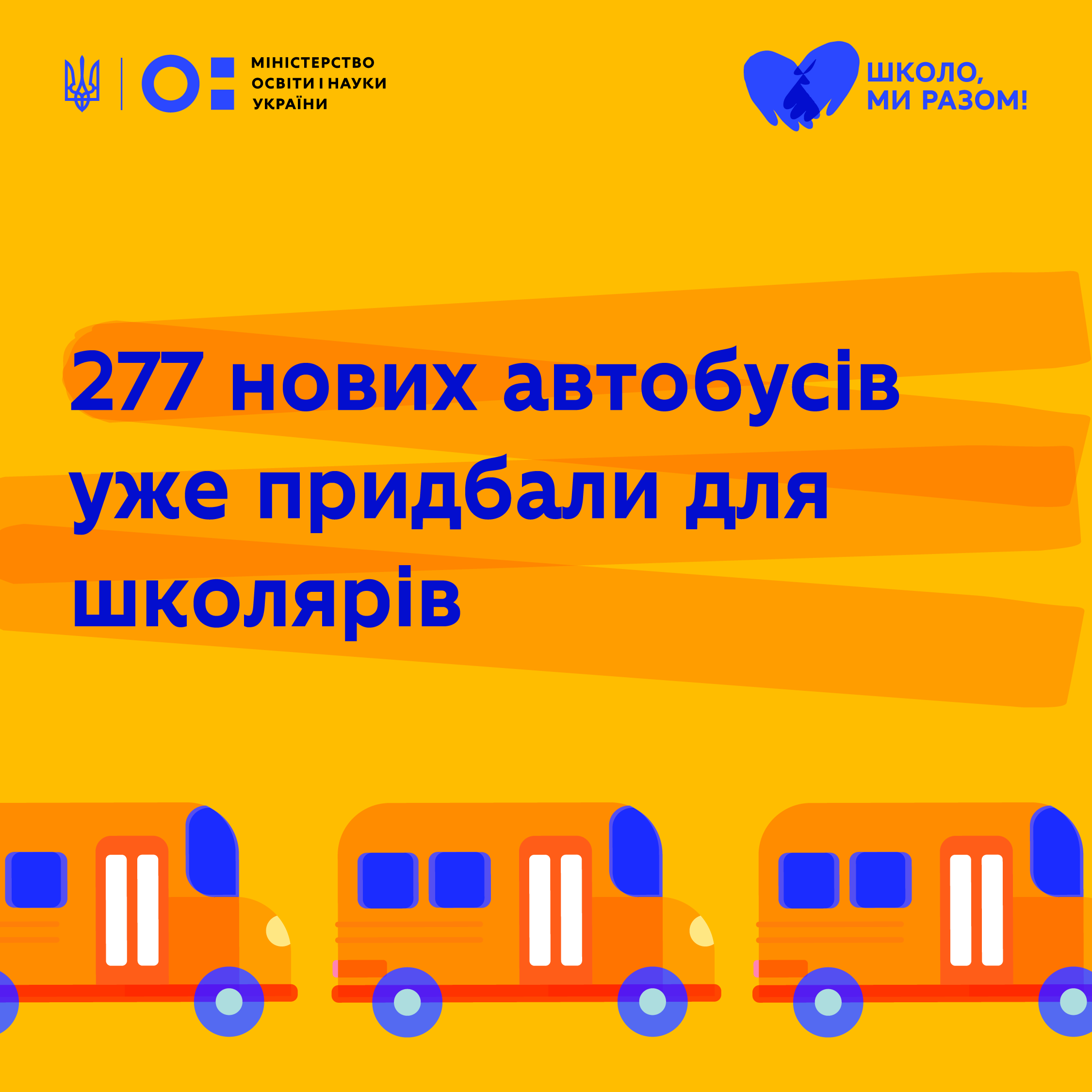 📍 Забезпечення шкіл автобусами – це один з основних напрямів ініціативи МОН із відновлення освітнього процесу «Школо, ми разом!». Ми прагнемо надати дітям усі можливості для безпечного доступу до очного навчання та активно працюємо у цьому напрямі. Закупівлі шкільних автобусів тривають, тож незабаром ще більше школярів матимуть зручний доступ до офлайн-освіти! 🏫✨