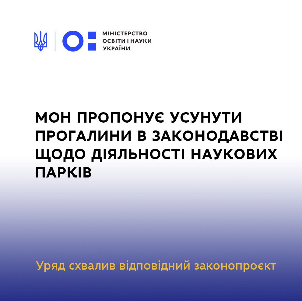 «Метою законопроєкту є підвищення ефективності інноваційної діяльності наукових парків та комерціалізації результатів наукових досліджень і науково-технічних (експериментальних) розробок. Міністерство вважає за необхідне надати закладам вищої освіти і науковим установам справжню автономію щодо створення наукових парків і виключити можливу корупційну складову у цьому процесі. Також ми пропонуємо передбачити певні гарантії для розвитку. МОН розробило законодавчі зміни, які дозволять науковим паркам запрацювати ефективно та мати реальні результати діяльності», ‒ підкреслив т.в.о. Міністра освіти і науки України Сергій Шкарлет.