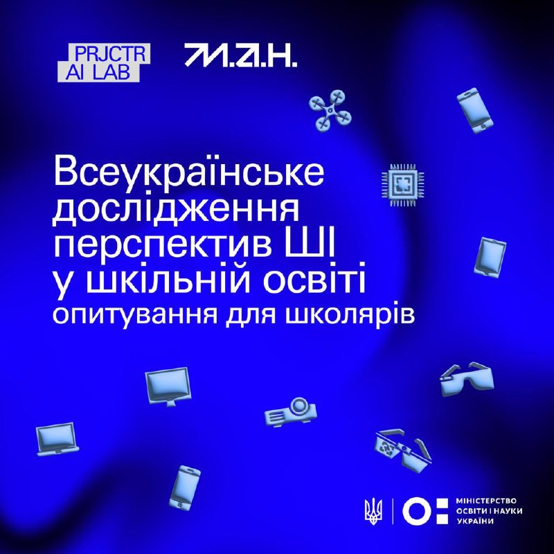 📍Опитування є анонімним щодо навчальних закладів: учасників не просять зазначати назву школи чи гімназії, а лише вказати населений пункт, вік, клас та зацікавлення. Більшість запитань - про ШІ і ставлення школярів до нього.