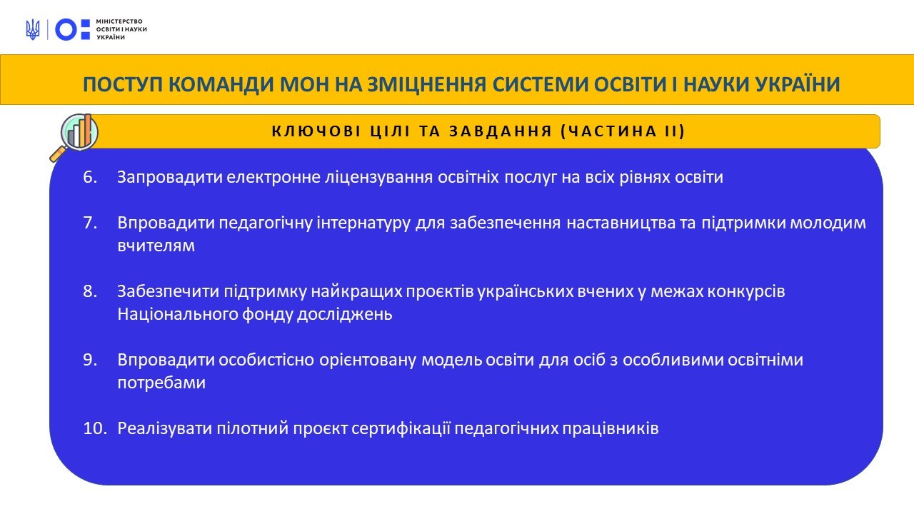 Міністерство освіти і науки України продовжує серію бліц-публікацій про роботу нової команди МОН. У цьому блоці – ключові цілі та завдання Міністерства.