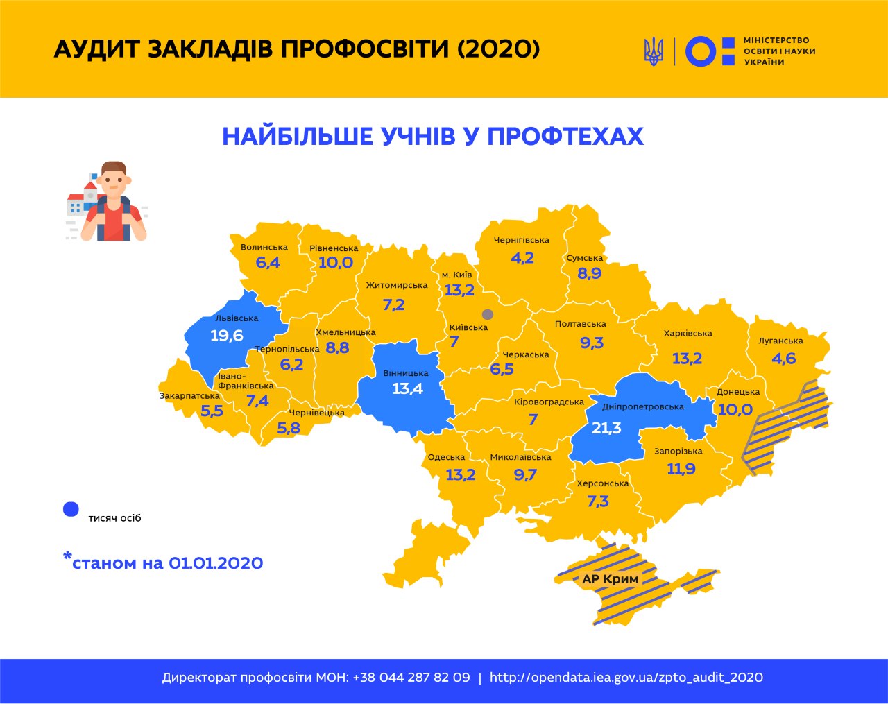 У профтехах Дніпропетровської, Львівської та Вінницької областей вчиться найбільше учнів. Про це свідчать дані з аудиту мережі, який проводився впродовж року у всій країні.
