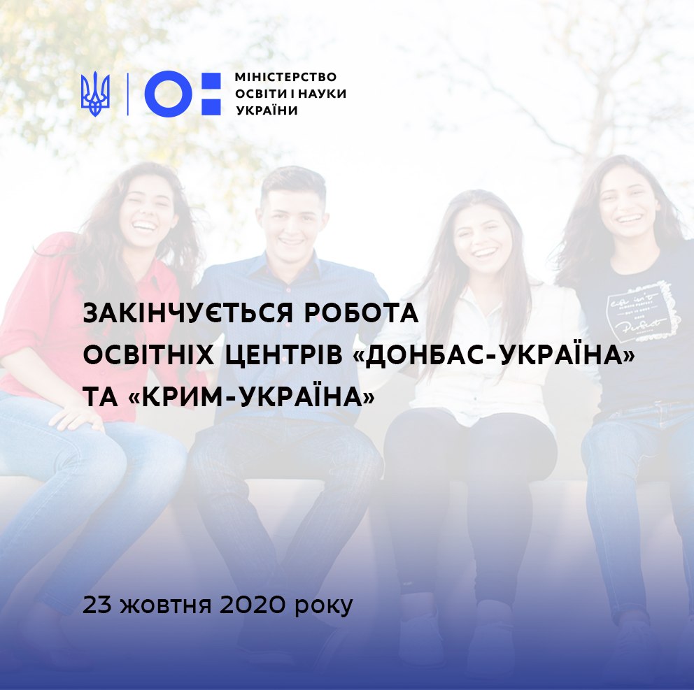 23 жовтня 2020 року закінчується робота освітніх центрів «Донбас-Україна» та «Крим-Україна», які забезпечували прийом осіб, місцем проживання яких є тимчасово окуповані території України – Автономна Республіка Крим та місто Севастополь, Донецька та Луганська області, до українських закладів вищої та фахової передвищої освіти за спрощеною процедурою.
