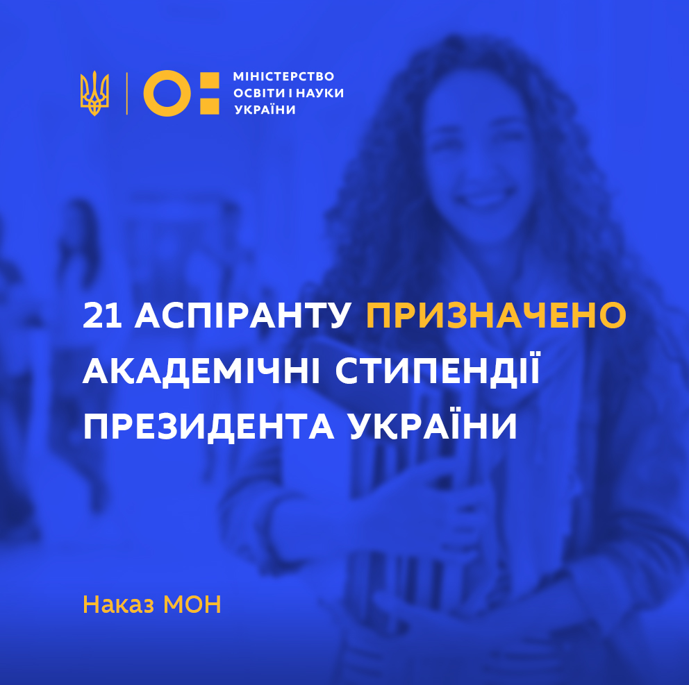 21 обдарований аспірант другого року навчання отримуватиме стипендію в розмірі 7 тис. 176 грн за рахунок стипендіального фонду закладу освіти. Список аспірантів, яким у 2020/2021 навчальному році призначено академічні стипендії Президента України, затверджений наказом МОН.