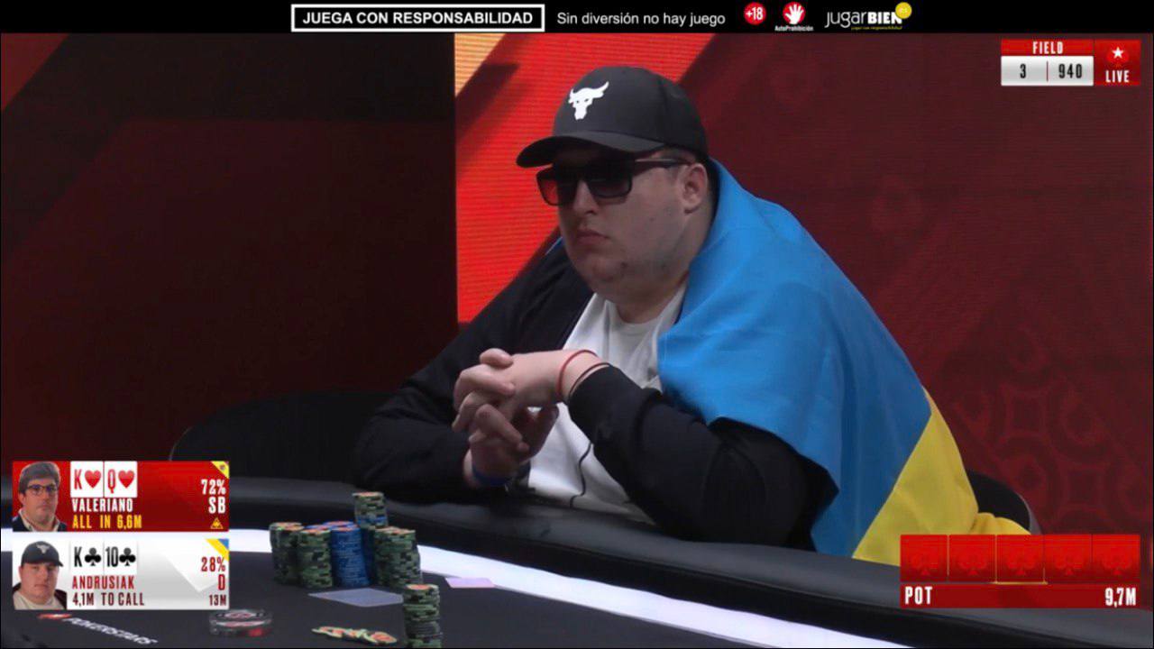 🇺🇦Андрій розпочав змагання за фінальним столом із п’ятим стеком, але ближче до середини турніру вирвався у чіплідери і втримав свою перевагу
