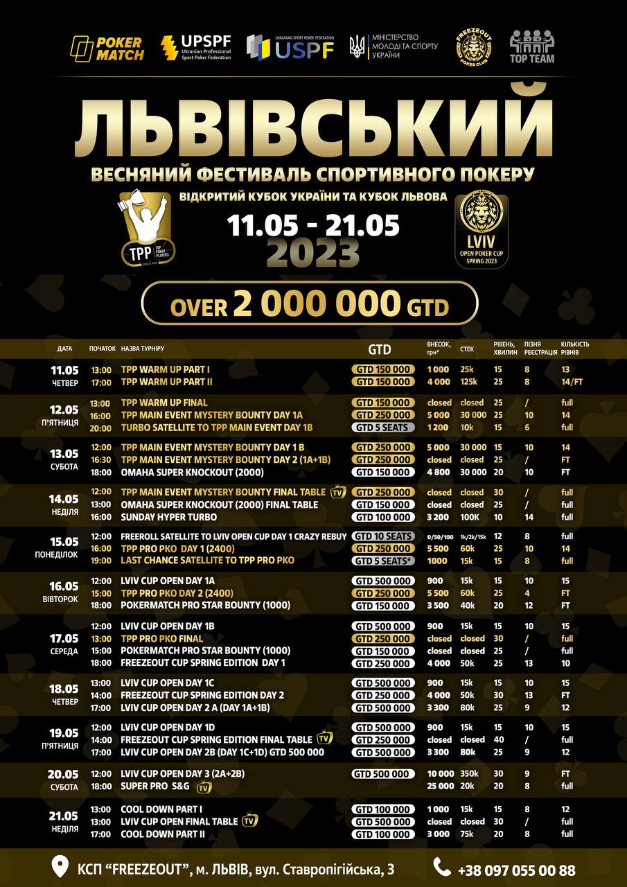 • Турнір проходить в рамках Львівського весняного фестивалю спортивного покеру