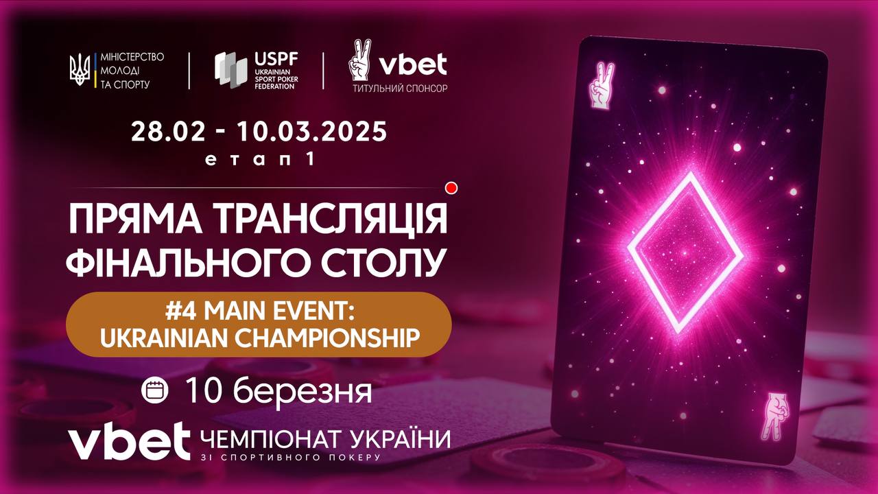 ▶️ Стартувала пряма трансляція гри Main Event: Ukrainian Championship Day2