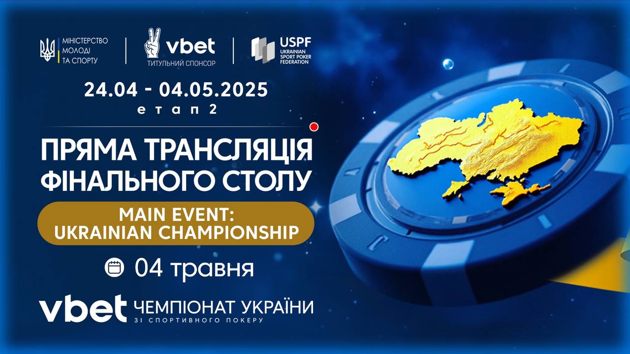 ⏰ Через 30 хвилин почнеться прямий ефір гри за фіналкою Main Event ІV етапу VBET Чемпіонату України зі спортивного покеру 2025!