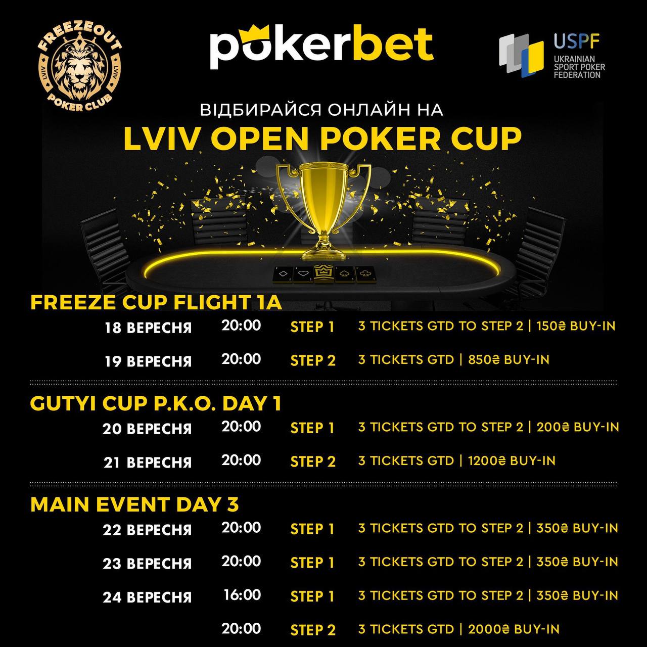 🔹 Серія проходить за підтримки Всеукраїнської федерації спортивного покеру