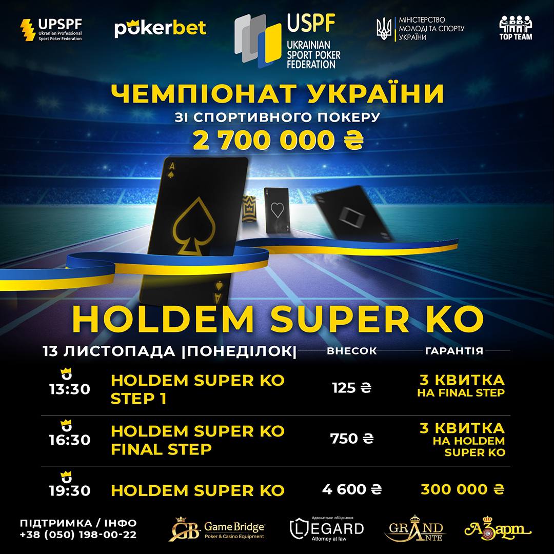 🙌 Вже сьогодні на Pokerbet стартує Holdem Super KO з гарантією 300 000₴