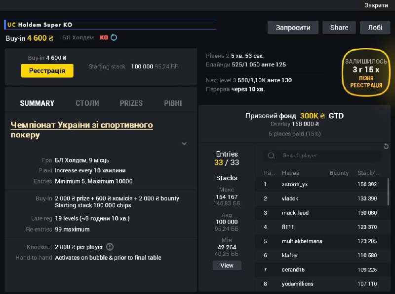 ⏰ О 19:30 приєднуйтеся на Holdem Super KO з гарантією 300 000₴ та ставайте першим переможцем Чемпіонату України