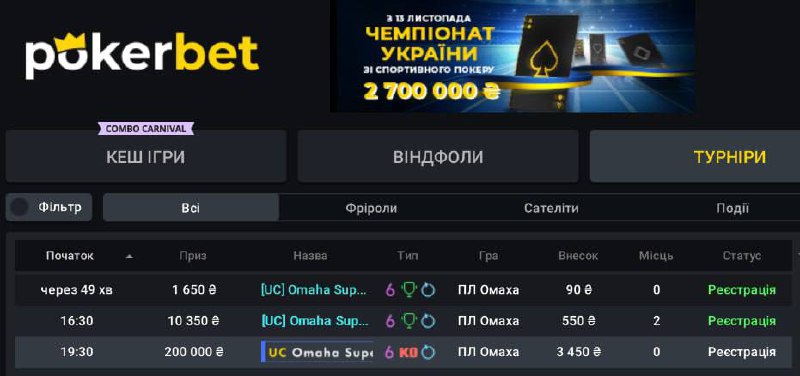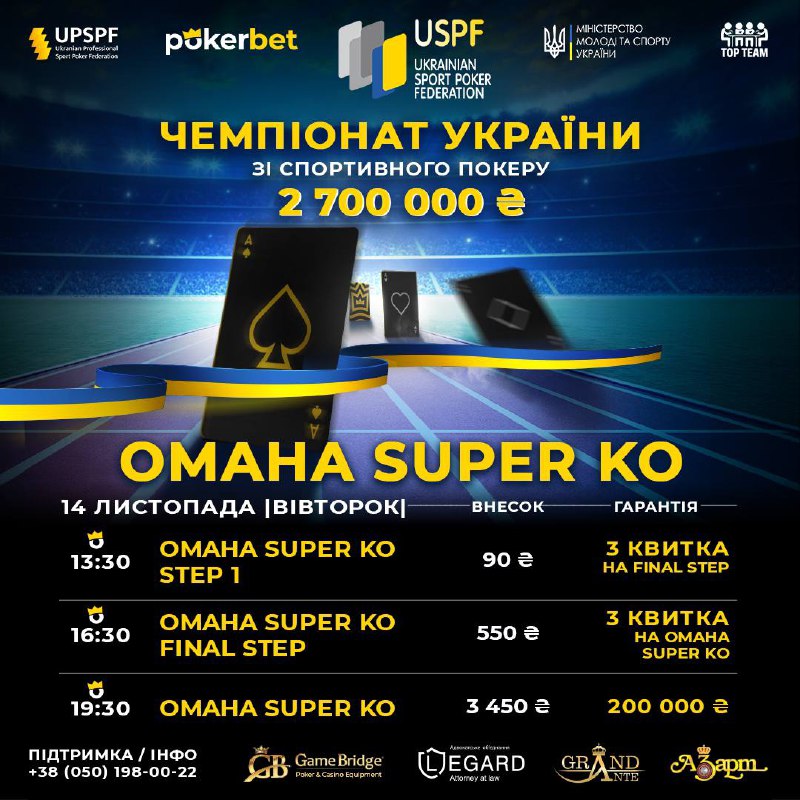 👉 Приєднуйтеся до фіналу чемпіонату України, адже сьогодні на Pokerbet граємо Omaha Super KO з гарантією 200 000₴
