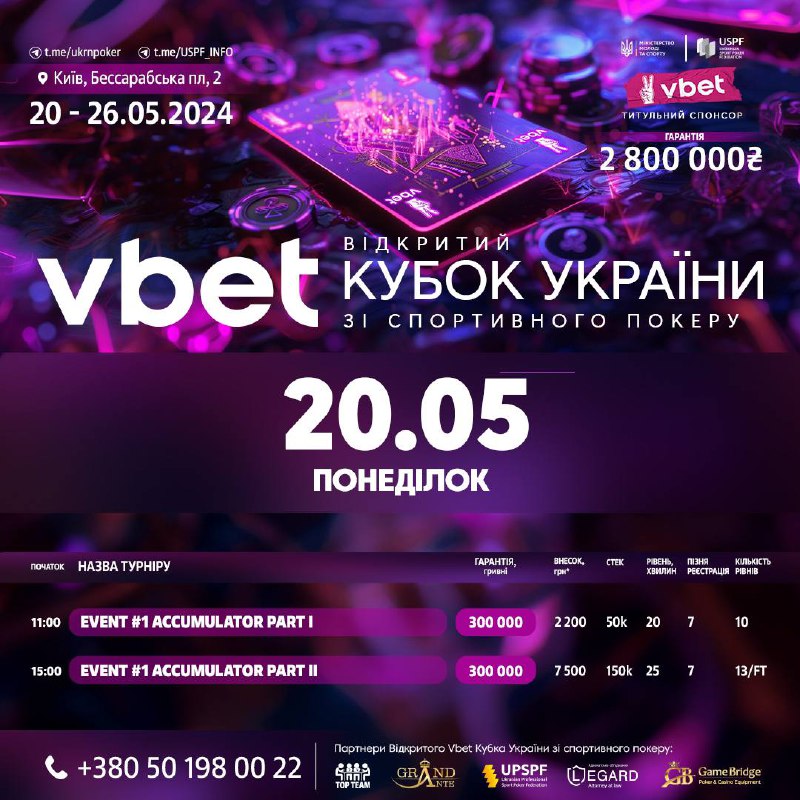 ✌️ Відкритий VBET Кубок України зі спортивного покеру від розпочинається вже завтра!