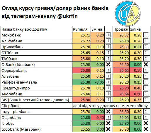Відповідно реагували і банки у своїх онлайн-обмінниках. Тож маємо на сьогодні ось таку зміну курсів (у табличці). І сподіваємось що ситуація буде і надалі стабілізуватися. Нехай і на поточному рівні.