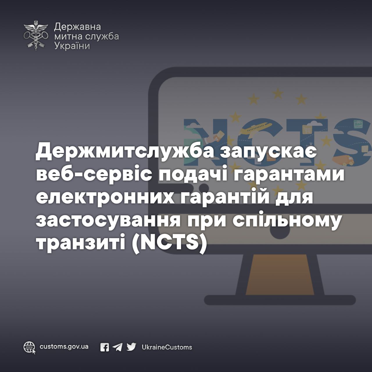 ⚡24 квітня Держмитслужба запускає веб-сервіс подачі гарантами електронних гарантій для застосування при спільному транзиті (NCTS)