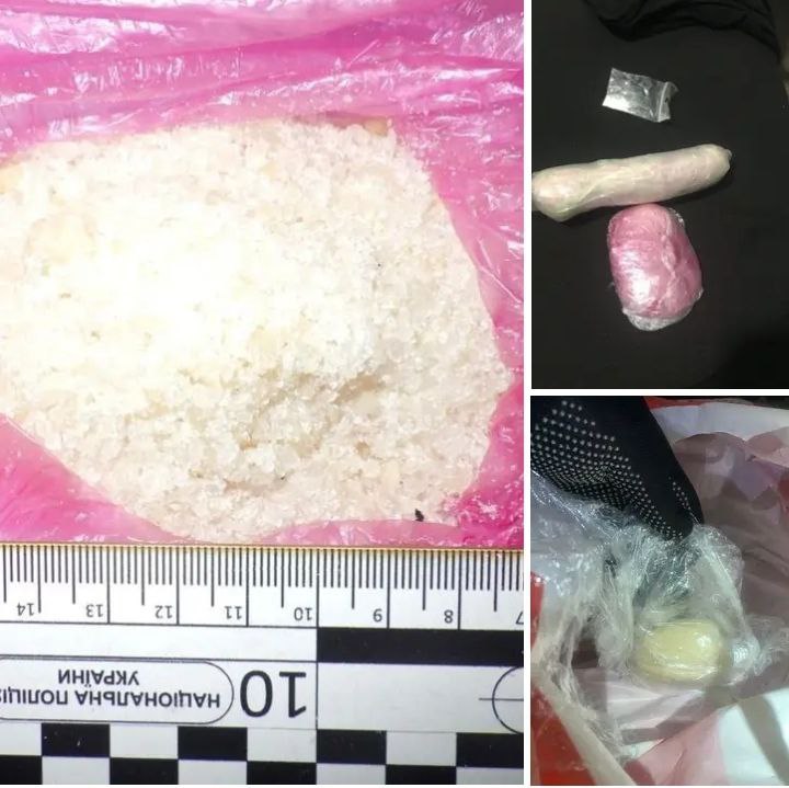 У подальшому з’ясувалося, що ще 4 схожих пакунки, щільно загорнутих у поліетилен, загальною вагою брутто майже 440 г, наркокур’єри перевозили в собі.