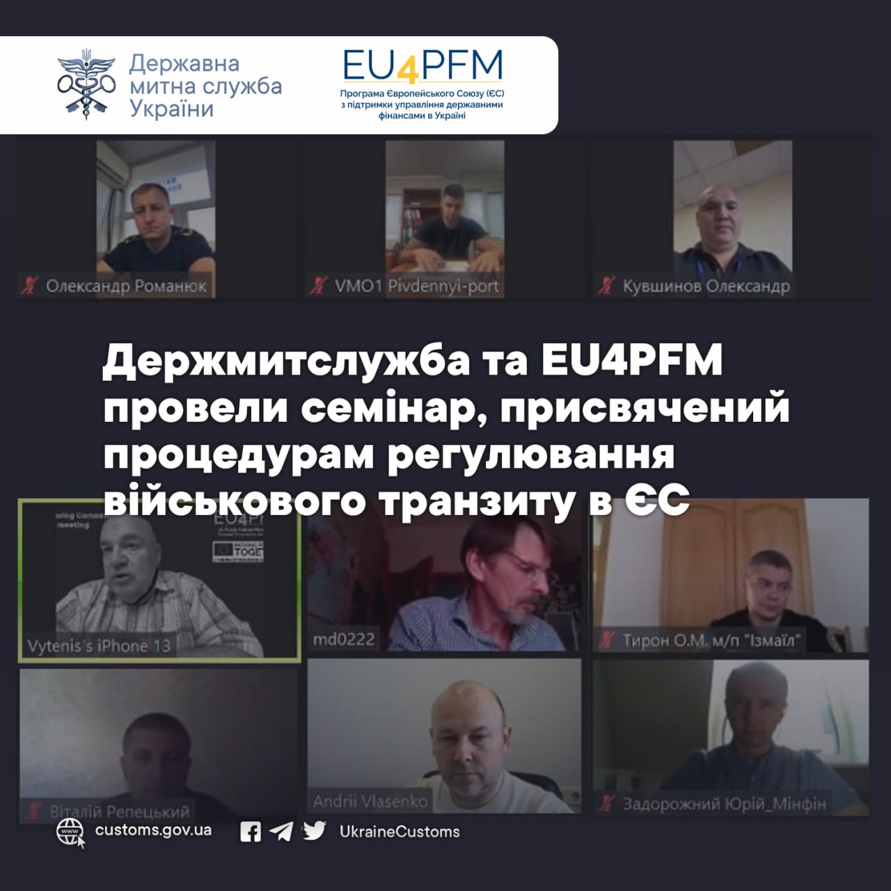 🤝Держмитслужба та EU4PFM провели семінар, присвячений процедурам регулювання військового транзиту в Європейському Союзі