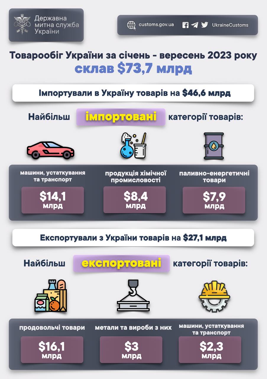 ✅ За 9 місяців 2023 року товарообіг склав $73,7 млрд