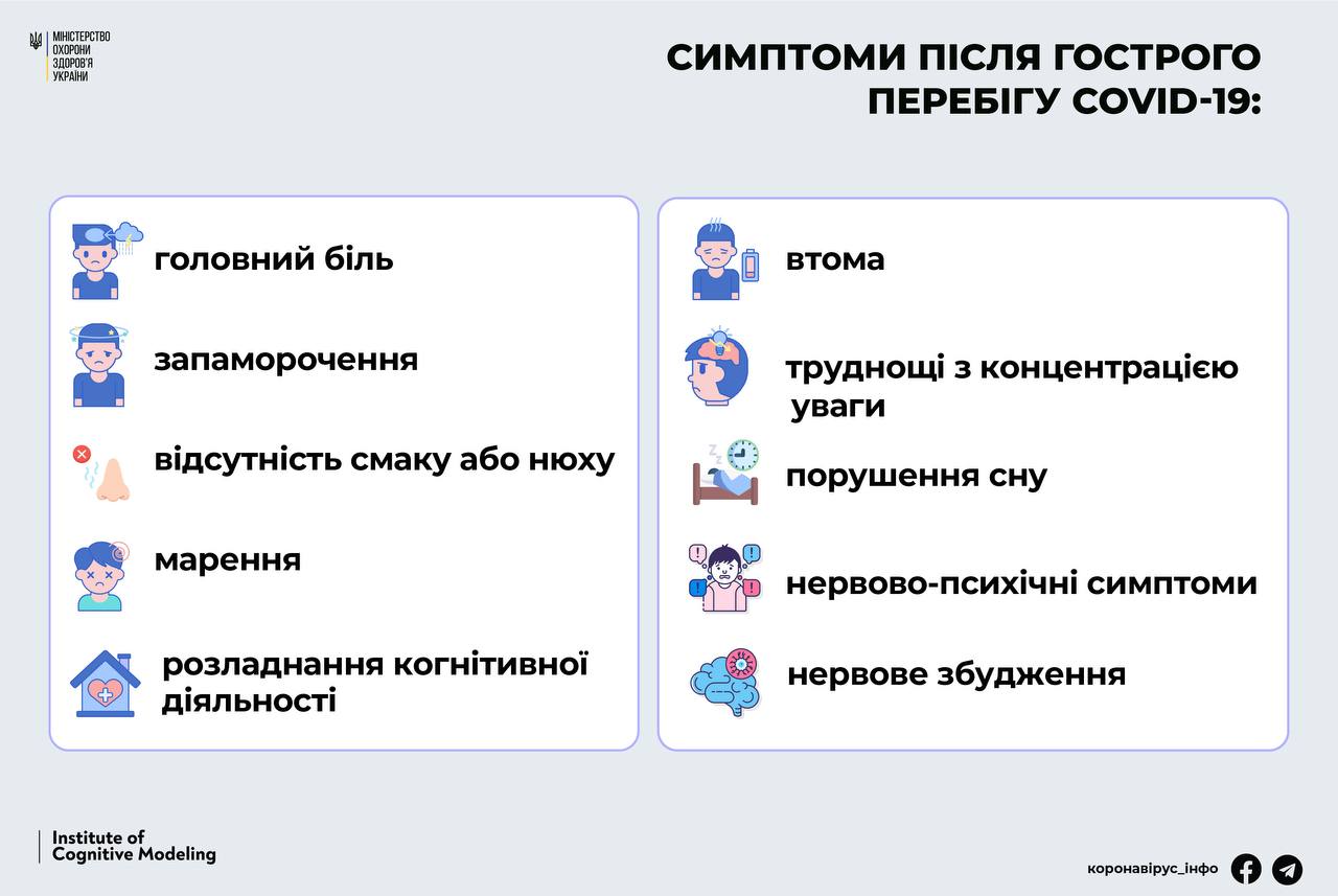 Про основні симптоми після гострого перебігу COVID-19, детальніше у нашій інфографіці⤵️