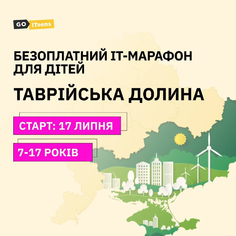 Уже 17 липня дітлахи матимуть унікальну можливість створити власними руками Україну Перемоги та спланувати реконструкцію наших тимчасово окупованих територій – «Таврійської Долини» на безоплатному онлайн ІТ-марафоні від ІТ-академії для дітей GoITeens.