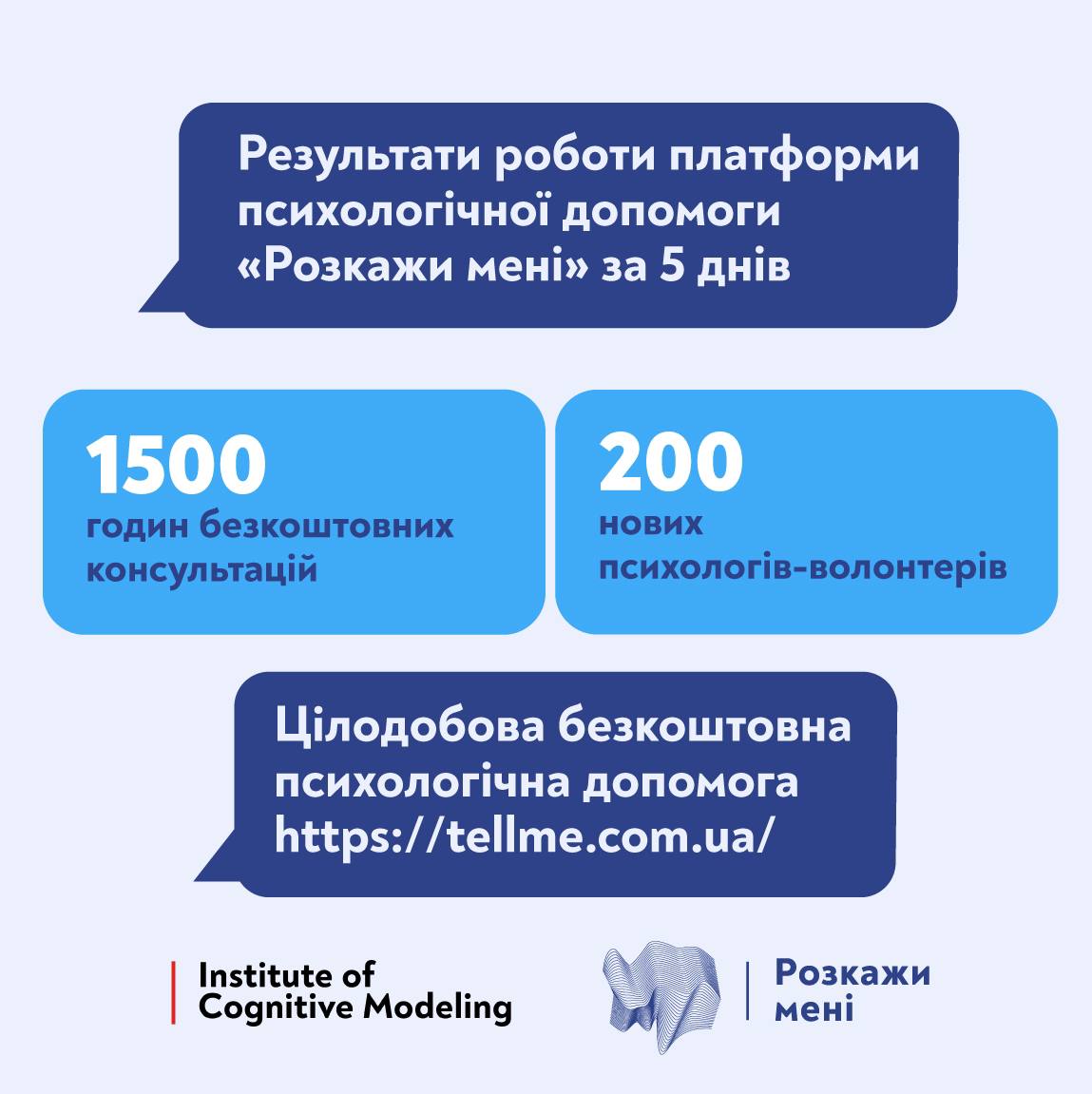 🟪 За 5 днів роботи платформи безкоштовної психологічної допомоги «Розкажи мені» була надана підтримка 1500 українцям.