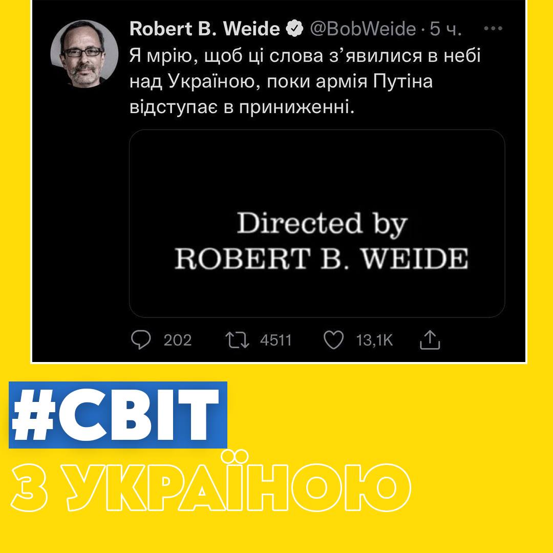 🎥І на останок. Американський сценарист, продюсер та режисер, популярний в усьому світі за написом: «Directed by Robert B. Weide», підтримав Україну в себе в Twiter: