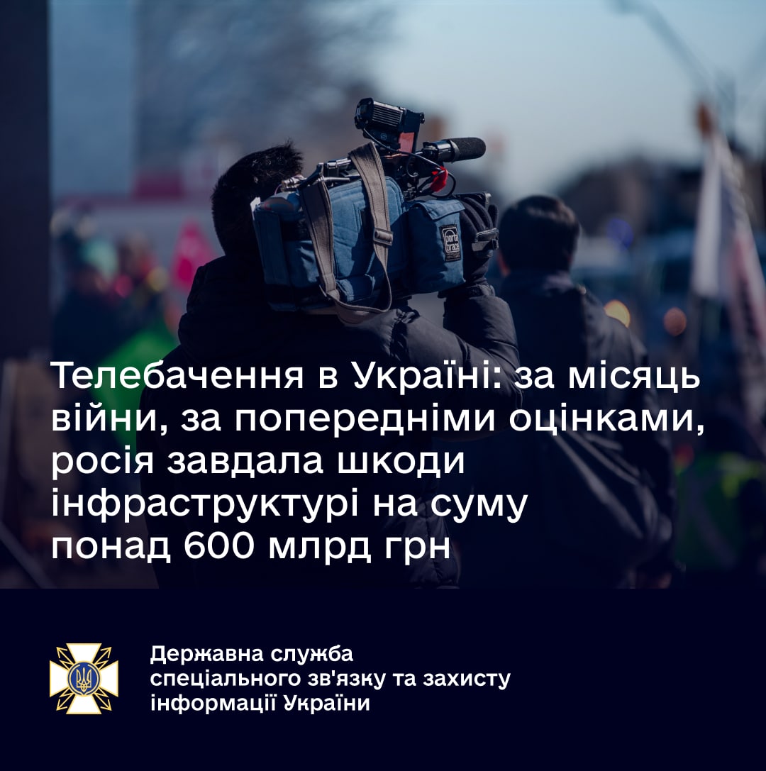 ⚡️Телебачення в Україні: за місяць війни, за попередніми оцінками, росія завдала шкоди інфраструктурі на суму понад 600 млрд грн