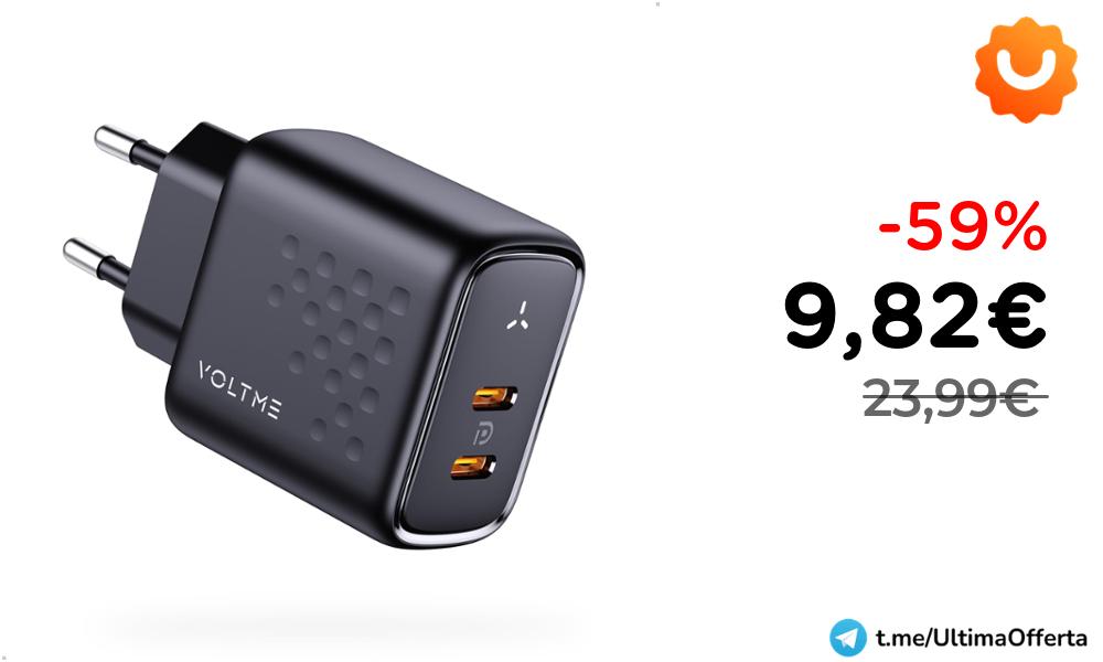 π VOLTME Doppio Caricatore USB-C 45W Nero GaN