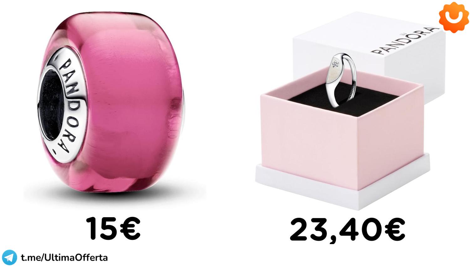 ๐ PANDORA Ciondolo Rosa in Argento e Vetro di Murano
