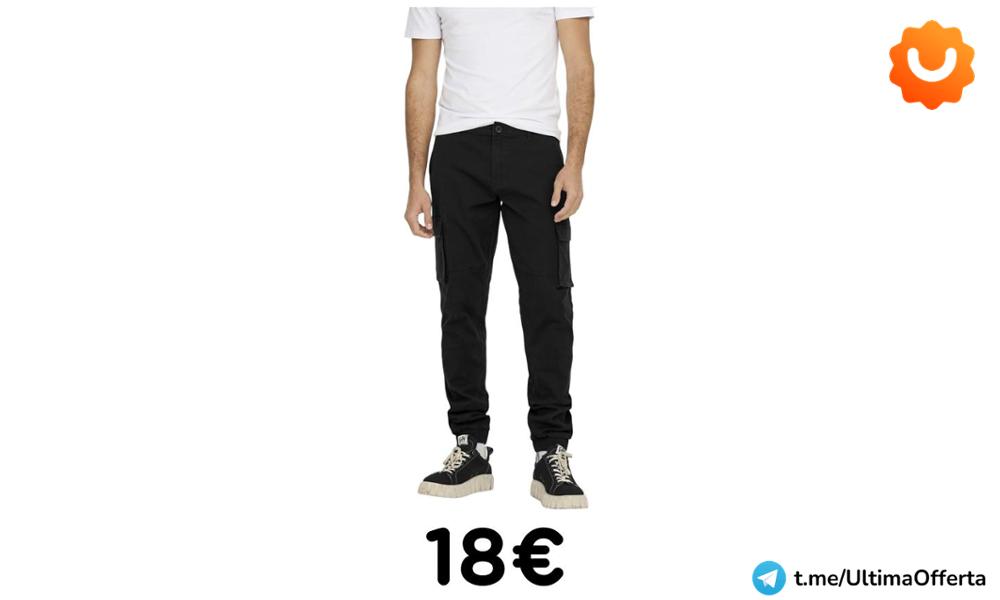 ๐ ONLY & SONS Pantaloni Cargo Uomo Nero 33W x 30L